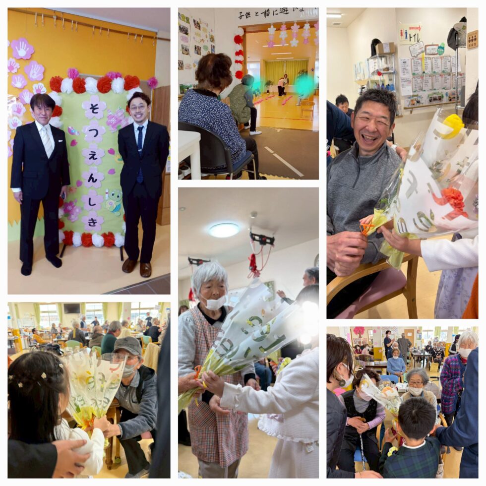 卒園式では合奏部(利用者と職員の)から園児達へ歌と、利用者から卒園児へ花を送りました😌