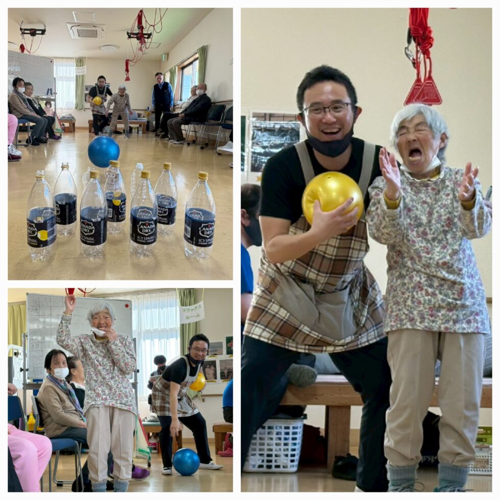 ボーリングは、悔しそうな顔😫や、ストライクにビックリする職員の顔😲良いね~😆