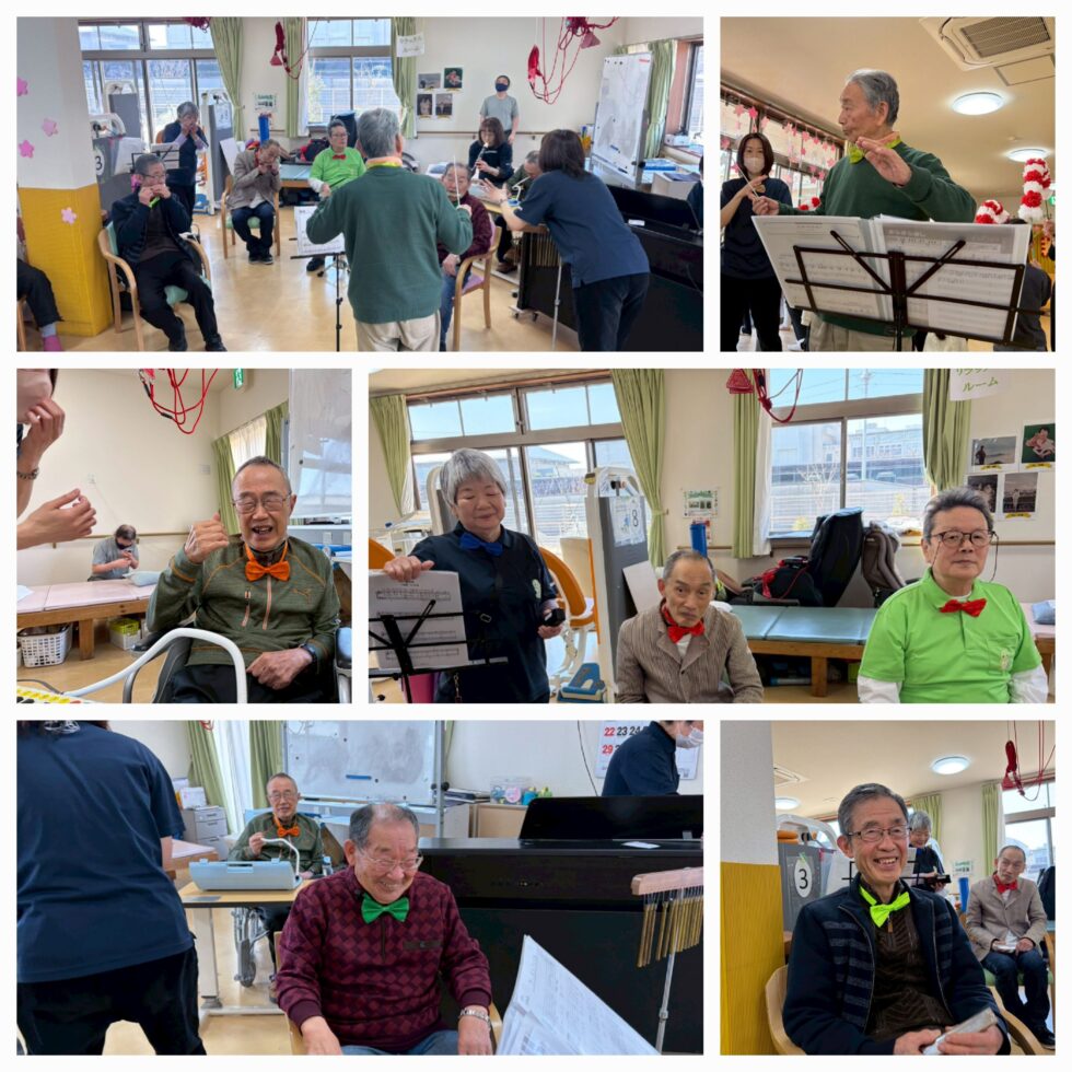 卒園式では合奏部(利用者と職員の)から園児達へ歌と、利用者から卒園児へ花を送りました😌